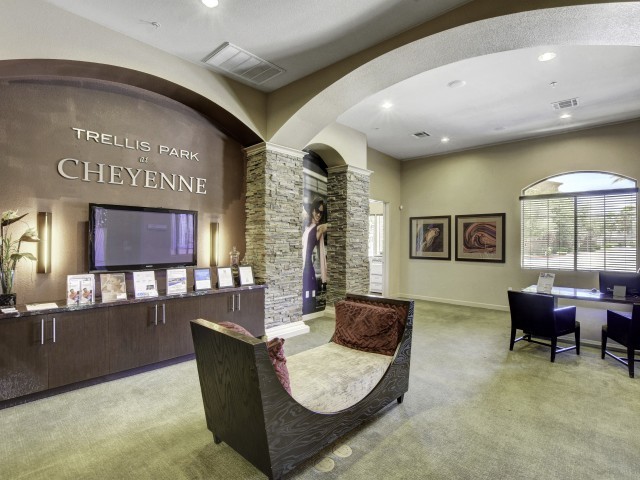 Trellis Park at Cheyenne is ideal for those looking for a world of convenience and comfort. Centrally located in Las Vegas, our community offers an irresistible combination of residential luxury, convenience and quality in a contemporary living environment. Our ideal location offers easy access to major freeways and a wide selection of fine dining, exciting shopping and the best in entertainment. There's no better time to discover all that you can gain when you join us at Trellis Park at Cheyenne! Take your pick of four innovative floorplans that make time at home a special pleasure. Designed with your comfort and convenience in mind, our residences have been appointed with a superb array of quality amenities to ensure your stay here is enjoyable and pleasant. At Trellis Park at Cheyenne, you'll find all the features you want for easy living including built-in computer desks, designer lighting packages, intrusion alarms, sleek black Whirlpool appliances, attached garages on select units and much more! Take advantage of the community amenities and services that we offer here at Trellis Park at Cheyenne. Enjoy our shimmering resort-style pool or relax in our soothing spa. You can get all of your work done in our cyber cafe with Java lounge, or host your next family get-together at our outdoor living lounge with casita and fireplace. Access to public transportation and gated access ensure that your travels to and from home will always be convenient and safe. Our spectacular staff is dedicated to always ensuring the best for our residents. Give us a call today for more information on why you should choose Trellis Park at Cheyenne as your new home!
