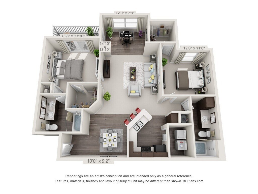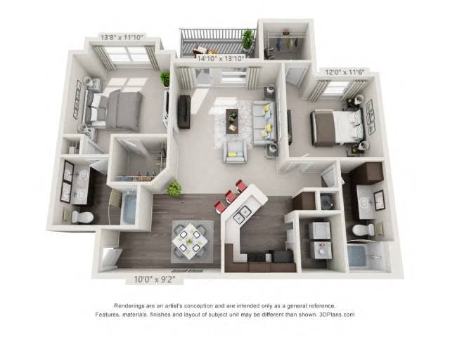 Apartment Model: A2From $1,4451 Bedroom, 1 Bath, 863 sq ftAvailable NowFloor plans are artist's rendering. All dimensions are approximate. Actual product and specifications may vary in dimension or detail. Not all features are available in every rental home. Prices and availability are subject to change. Base rent is based on monthly frequency. Additional fees may apply, such as but not limited to package delivery, trash, water, amenities, etc. Deposits vary. Please see a representative for details.