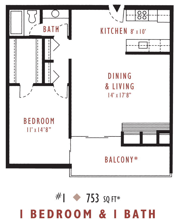 1 Bed, 1 Bath, 753 sq ftAvailable NowModel Gallery