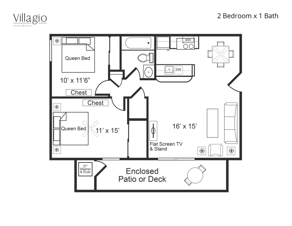 2 Beds, 2 Baths, 1006 sq ftAvailable NowLargest 2 BedroomThis is the largest 2 Bedroom at this PropertyModel Gallery