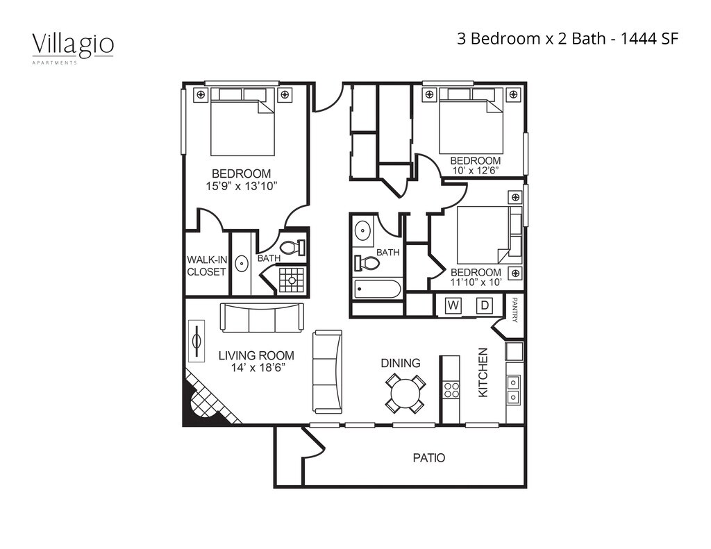 Villagio Furnished offers 1 to 3 Bedroom apartments starting from $1,299 and having 720–1,294 sq ft. Here is the current pricing and availability:
