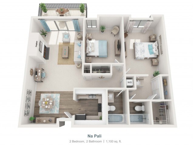 Apartment Model: Na Pali - TailoredFrom $3,3442 Bedroom, 2 Bath, 1100 sq ftAvailable NowFloor plans are artist's rendering. All dimensions are approximate. Actual product and specifications may vary in dimension or detail. Not all features are available in every rental home. Prices and availability are subject to change. Base rent is based on monthly frequency. Additional fees may apply, such as but not limited to package delivery, trash, water, amenities, etc. Deposits vary. Please see a representative for details.