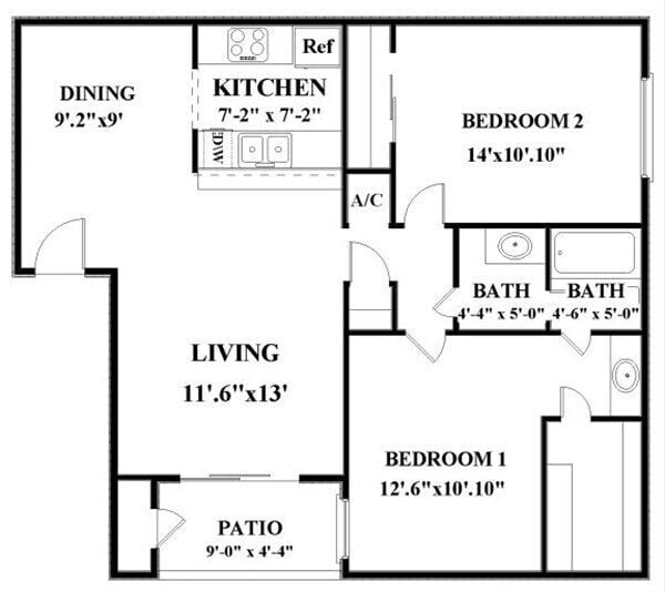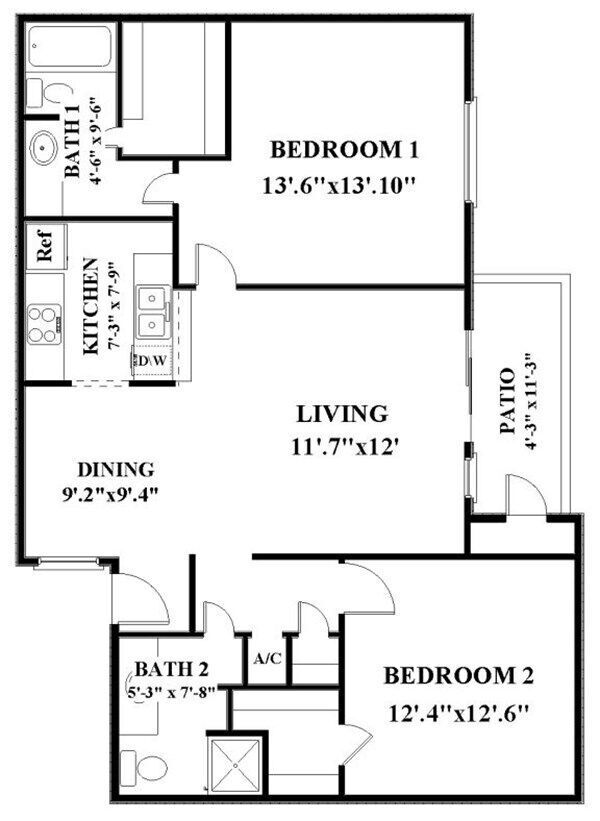 Apartment Model: A2$9551 Bedroom, 1 Bath, 698 sq ftAvailable Now![]()