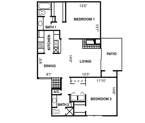 Apartment Model: A3From $8501 Bedroom, 1 Bath, 703 sq ftAvailable Now![]()