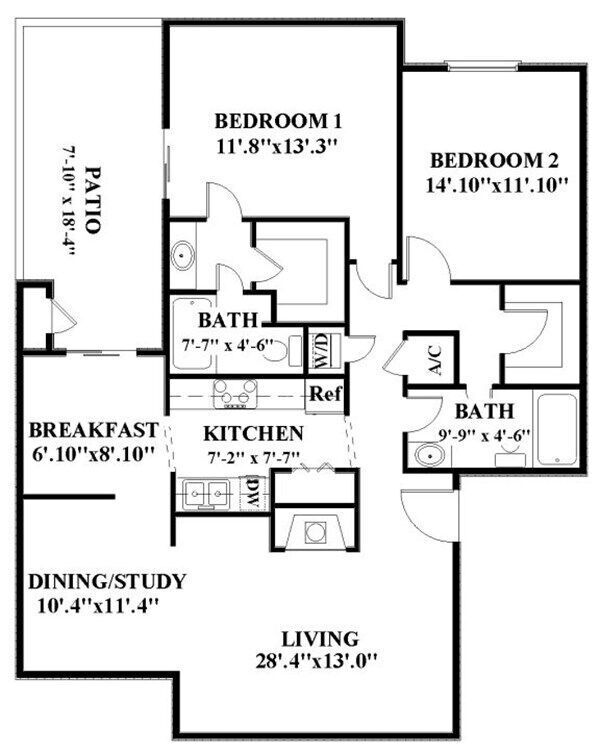 A2 - Floorplan 1 Apartment Unit: 802Apartment Model: A2$9551 Bedroom, 1 Bath, 698 sq ftAvailable Now2 Bedrooms