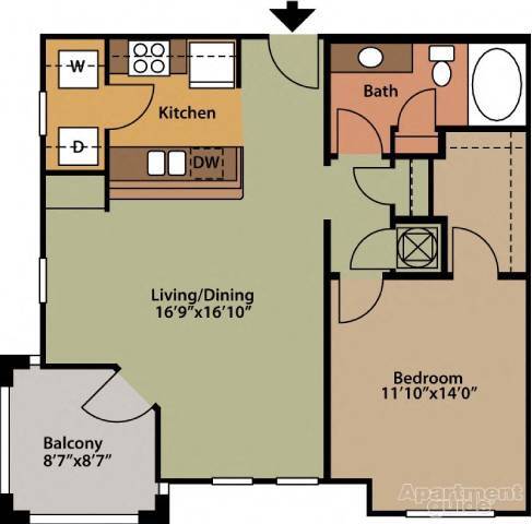 Apartment Model: Elliott$1,6051 Bedroom, 1 Bath, 869 sq ftAvailable NowFloor plans are artist's rendering. All dimensions are approximate. Actual product and specifications may vary in dimension or detail. Not all features are available in every rental home. Prices and availability are subject to change. Base rent is based on monthly frequency. Additional fees may apply, such as but not limited to package delivery, trash, water, amenities, etc. Deposits vary. Please see a representative for details.