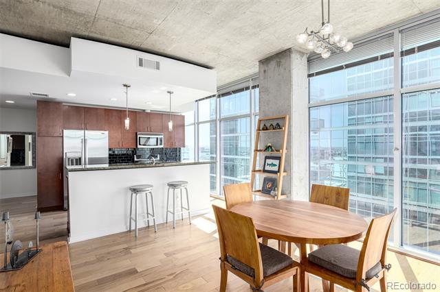 Jenny UsajStylish condo with captivating city views! Discover an open and functional layout enhanced by wood flooring and abundant natural light. The well-appointed kitchen features a breakfast bar, stainless steel appliances, a sleek black tile backsplash, granite counters, and an abundance of cabinetry. Thoughtfully designed floor plan includes two split, carpeted bedrooms for added privacy! The primary suite enjoys balcony access, a walk-in closet, and a private bathroom with a tub/shower combination. The secondary bedroom has a mirrored-door closet and convenient bathroom access. This is a perfect spot to relax and take in the surrounding views. Community amenities elevate the lifestyle with elevators, a clubhouse, rooftop deck, sparkling pool, fire pit, gym and 24/7 front desk. Walk to Riverfront Park, LoDo and LoHi for food, shopping and entertainment. The major arenas are also nearby, enjoy the Rockies, Nuggets, and Broncos with a quick walk/scooter/or Uber ride. Condominium MLS# 5416023