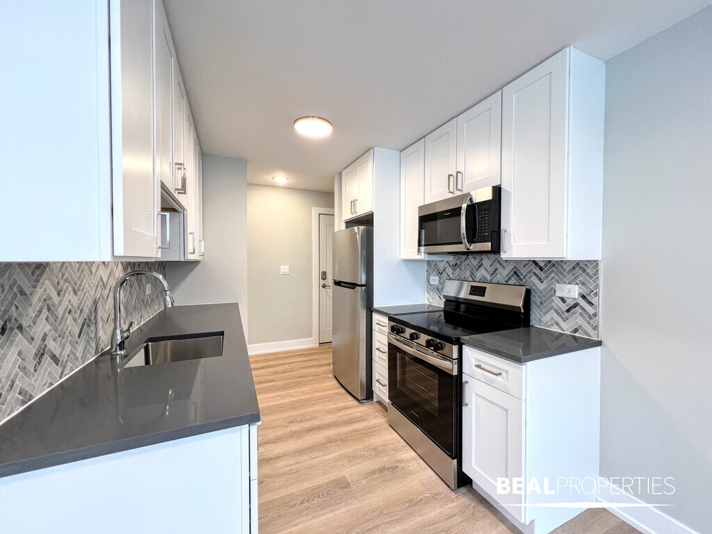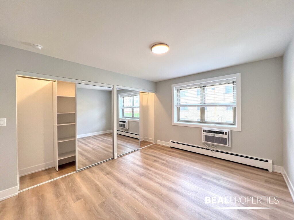 This one bed apartment features all the bells and whistles. Each apartment has a spacious living room that allows you to entertain for any occasion. The kitchen is renovated with stainless steel appliances, dishwasher, microwave, in-unit laundry, wood cabinets and great counter space for all your meal prep needs. The bedroom is large enough to fit at least a queen size bed, dressers and or a desk. One of the best features is all the closet space you can ask for with built in closet organizers. The bathroom features a soaking tub, subway tiles, and a large mirror. Other top features include, in unit laundry, multiple closets, big windows and built in AC! Don't forget to bring your pets too! Dogs and cats are welcomed!