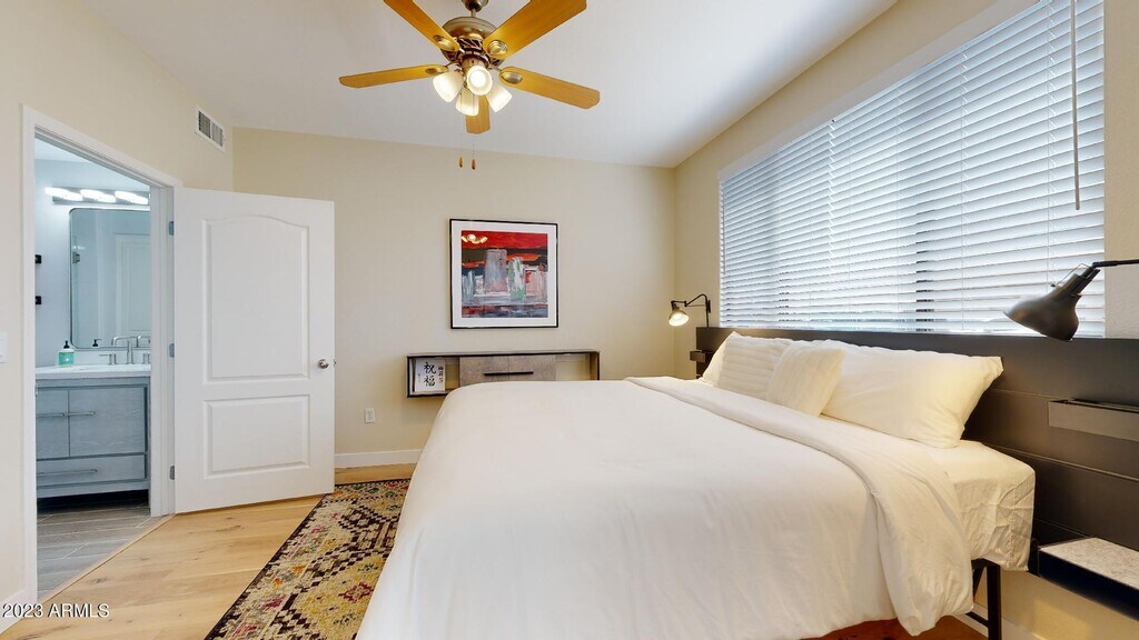 Welcome to this beautifully updated 2-bedroom,2-bathroom condo located in a desirable gated community. This light and bright unit features an open floor plan with a spacious living room and dining area that seamlessly connect to a modern kitchen complete with granite countertops,new stainless-steel appliances,and ample cabinet space. Freshly painted throughout,the unit showcases new laminate wood-style plank flooring,updated light fixtures,and ceiling fans for a clean,contemporary feel. The split-bedroom layout offers added privacy,making it ideal for roommates,guests,or a home office setup. Enjoy your own private patio with additional storage,in-unit laundry,and assigned covered parking for convenience. Residents enjoy resort-style amenities including heated pools and spas,a fitness center,clubhouse,and beautifully maintained lush landscaping. Ideally located near Whole Foods,Kierland Commons,Scottsdale Quarter,movie theaters,golf,hiking,and top dining destinations with easy freeway access this unit truly offers the best of the Scottsdale lifestyle.