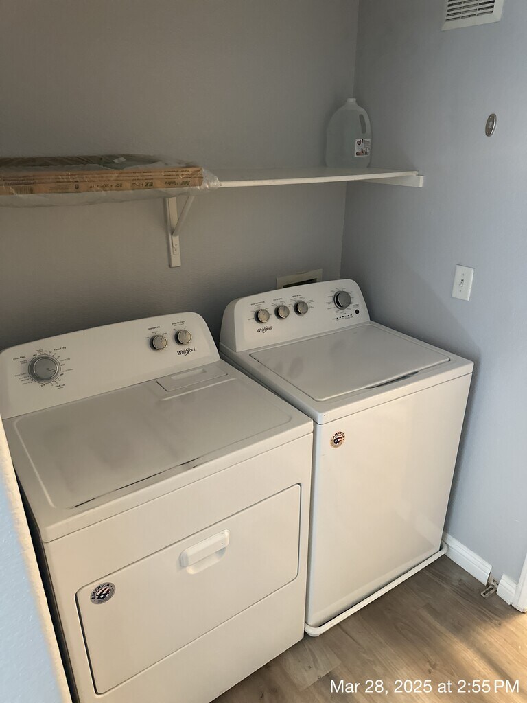 Here is a revised version written in a neutral, compliant style suitable for Las Vegas MLS: New flooring and baseboards throughout. Cabinets, shelves, and closets have been freshly painted. Gated upstairs unit with 2 bedrooms and 2 bathrooms. The living room opens to the kitchen, which includes a breakfast bar, refrigerator, stove, dishwasher, and shelving. Bedrooms are located on opposite sides of the unit. The primary bedroom features a walk-in closet and an attached bathroom with dual sinks and a tub/shower combination. The secondary bedroom has two closets, and the second bathroom includes a shower. A covered balcony off the living room overlooks the community pool and spa. Community amenities include two pools and two spas.