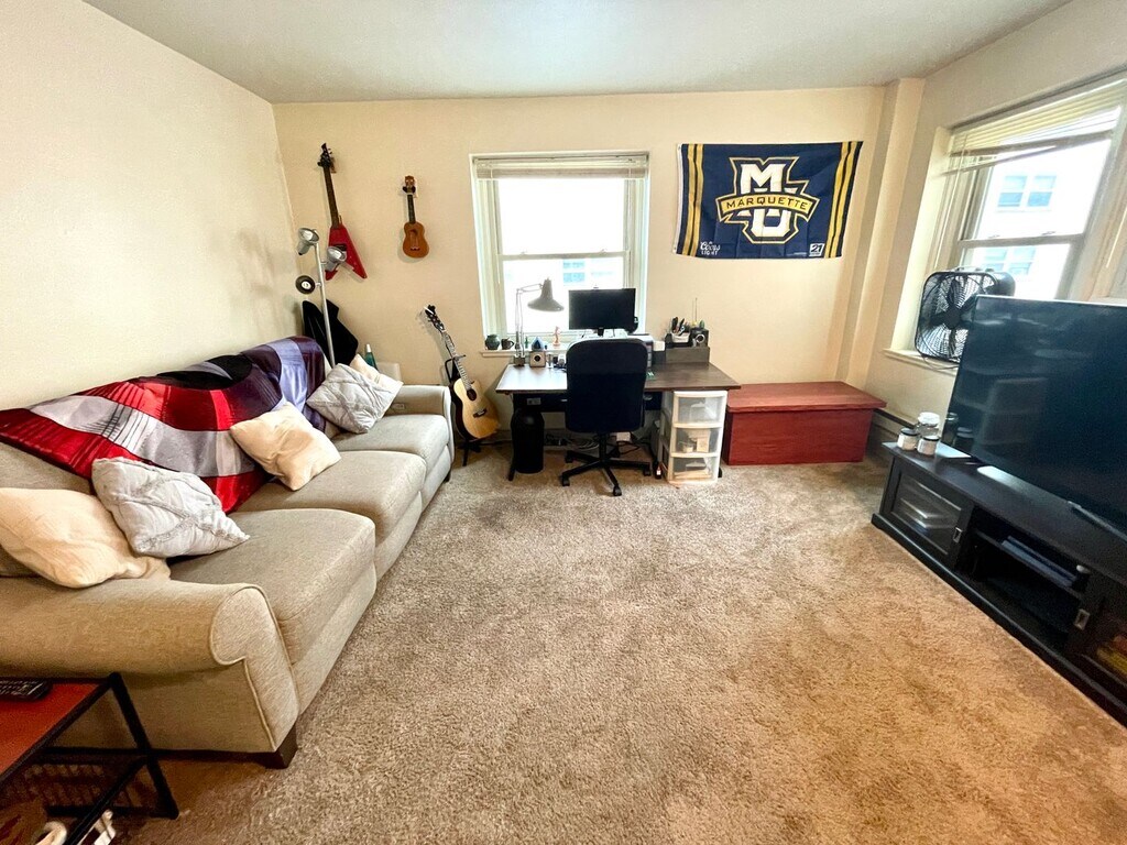 Este moderno edificio de gran altura de la 1950s diseñado por the architect, E.J. Hinton, espectáculos influencias Art Deco. Horizontales bandas de la alternancia de ladrillos color crema con bandas de bloques de concreto verde crean un efecto espectacular. Los apartamentos tienen impresionantes de la ciudad y vista parcial de las vistas al lago. Maestría diseñados con planos de concepto abierto alfombras de lujo, aire acondicionado y termostatos programables. Algunos apartamentos renovados tienen encimeras de granito, iluminación empotrada, electrodomésticos de acero inoxidable y pisos laminados de madera de pergo. Ubicado en el vecindario de East Town, el centro de la ciudad de Milwaukee. A una cuadra de la vista al lago y a una poca distancia a pie de la vida nocturna y las tiendas en Plaza de la Catedral. Vecindario: Downtown Tamaño edificio: 90 apartamentos seleccionados Habitación estándar de una habitación: A partir de $735 Remodelados de una habitación: A partir de $850 El alquiler incluye: Servicios de agua El edificio & Comodidades del apartamento: Electrodomésticos incluidos en el apartamento Televisión por cable & Internet incluido en el apartamento Aire acondicionado en el apartamento Poder en el lugar, garaje de estacionamiento en la superficie & Lavandería en el lugar & espacio para almacenaje Nota: Hay un sofá restricción de 78? para alojar más anchas y la altura Opciones de arrendamiento flexibles disponibles!