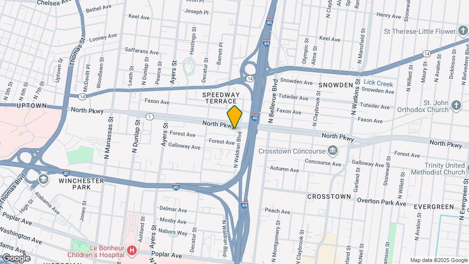 1095 N Parkway se encuentra en el Barrio Crosstown y el código postal 38105 de Memphis, TN.