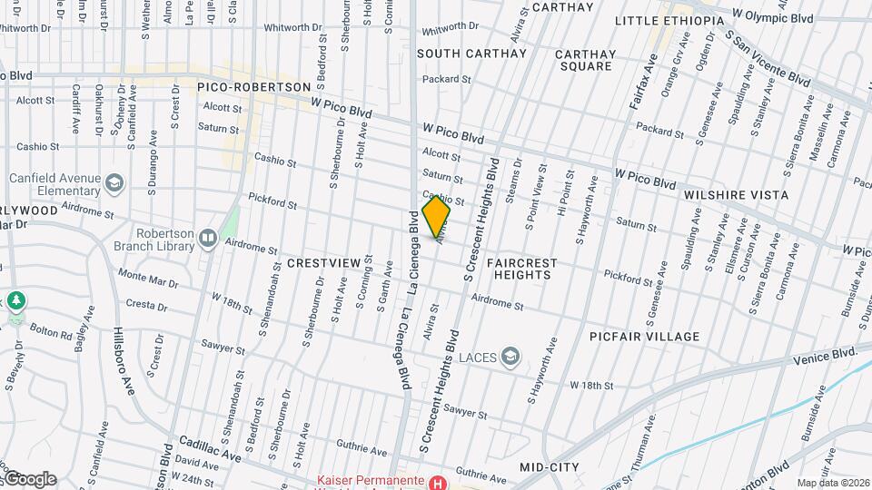 1601 Alvira St se encuentra en el Barrio Pico Robertson y el código postal 90035 de Los Angeles, CA.