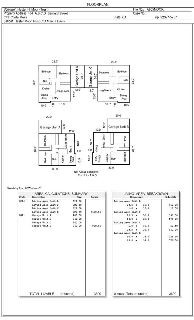 Units A,B,C,D is located in the Downtown Costa Mesa Neighborhood and 92627 Zip code of Costa Mesa, CA.