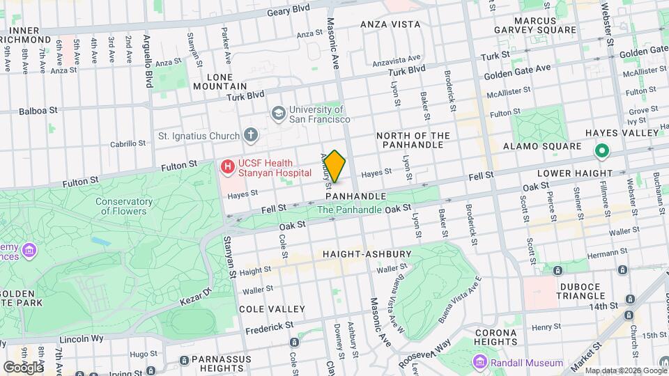212-214 Ashbury St tiene 5 parques en un radio de 1.7 millas, incluyendo duboce park, Golden Gate Park, San Francisco Botanical Gardens, Glen Canyon, y Alta Plaza Park.