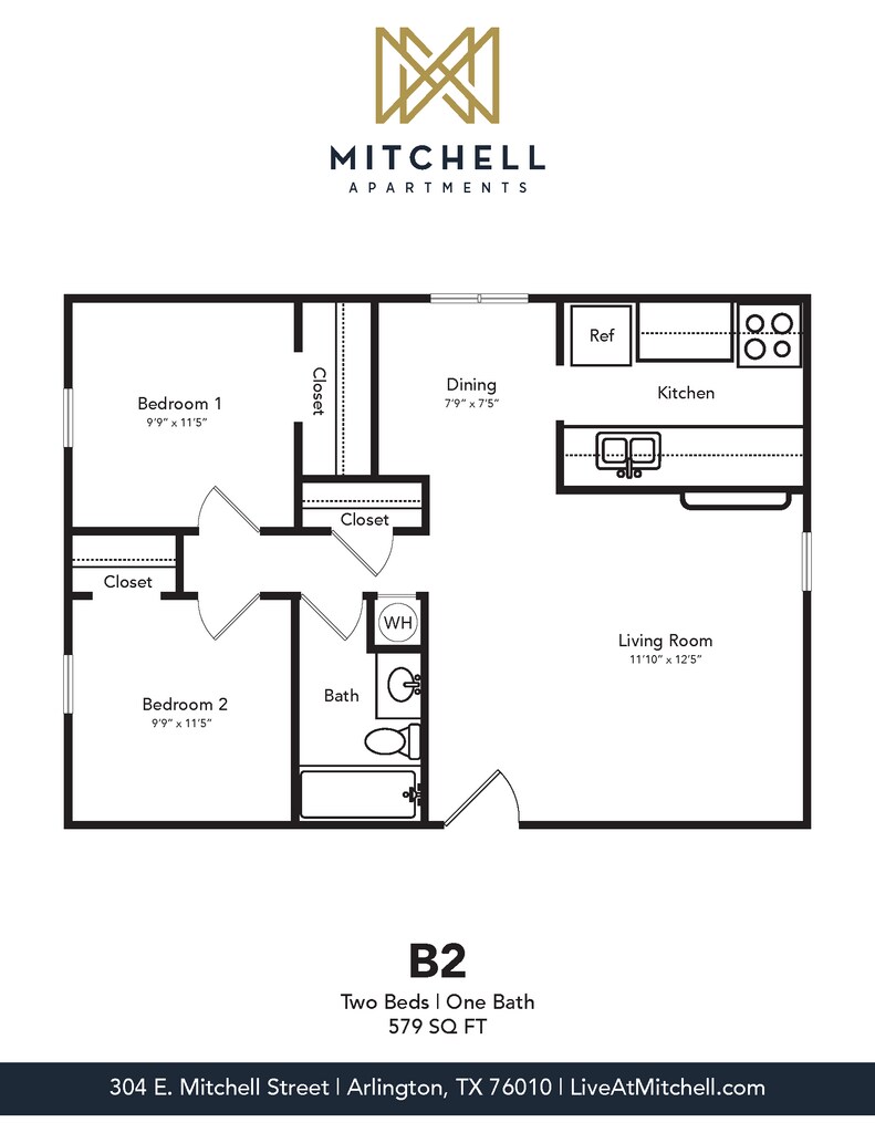 2 Dormitorios, 2 Baños, 1153 pies²Galería del Modelo