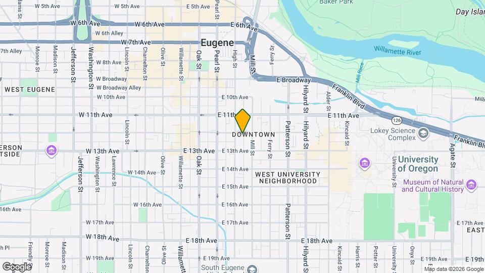 342 E 12th Ave se encuentra en el Barrio West University y el código postal 97401 de Eugene, OR.