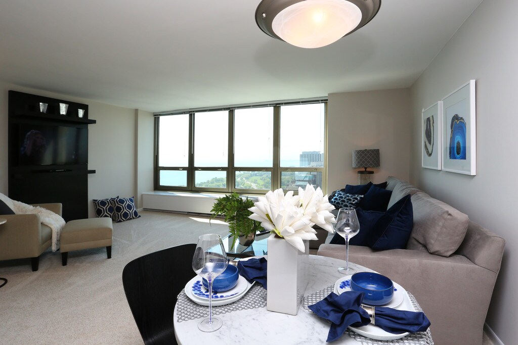 August 20, 2015This is great apartment building for enjoying Chicago summer - rooftop pool and sundeck/grills, close to Lake Shore path, parks, and beaches, and amazing SE views of city skyline and Lake Michigan. Great amenities with onsite gym, laundry, package receiving room, and valet parking garage. Also great location for busses and many restaurants, shops, grocery stores, nightlife, etc. The 1 bedroom apartments are decent size with good closet space, but upgrades to kitchens, and bathrooms would be ...nice. Very friendly and helpful staff and overall great community feel.Leer MásReseña de Apartments.com