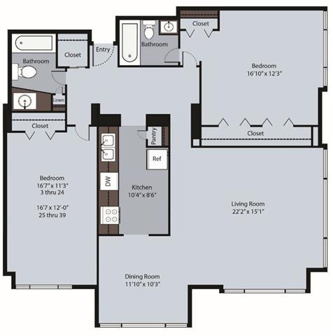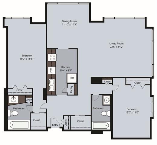 Modelo de apartamento: Corner One Bedroom/One BathDesde $2,5291 Dormitorio, 1 Baño, 850 sq ftDisponible AhoraPlanosFotos![]()