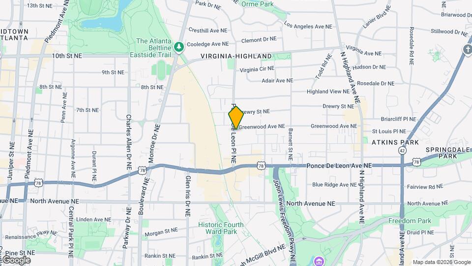 795 Ponce De Leon Pl se encuentra en el Barrio Virginia Highland y el código postal 30306 de Atlanta, GA.