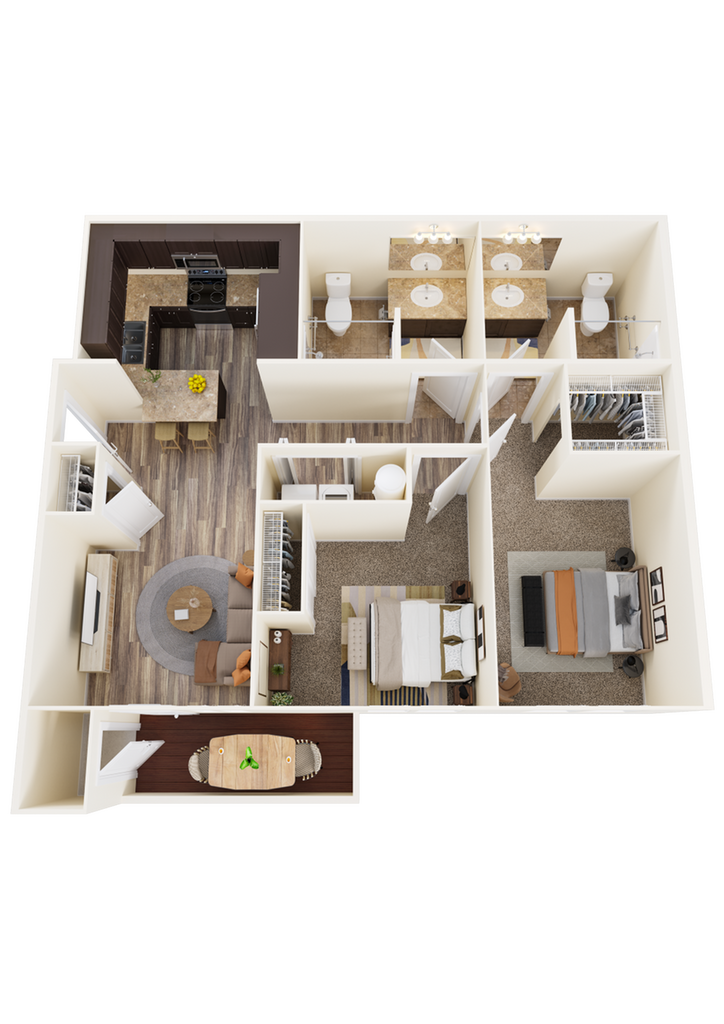 2 Beds, 2 Baths, 1043 sq ftAvailable NowLargest 2 BedroomThis is the largest 2 Bedroom at this PropertyModel Gallery