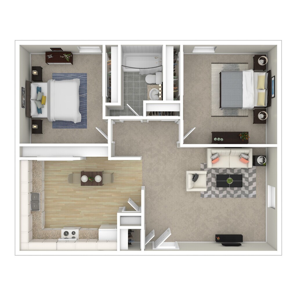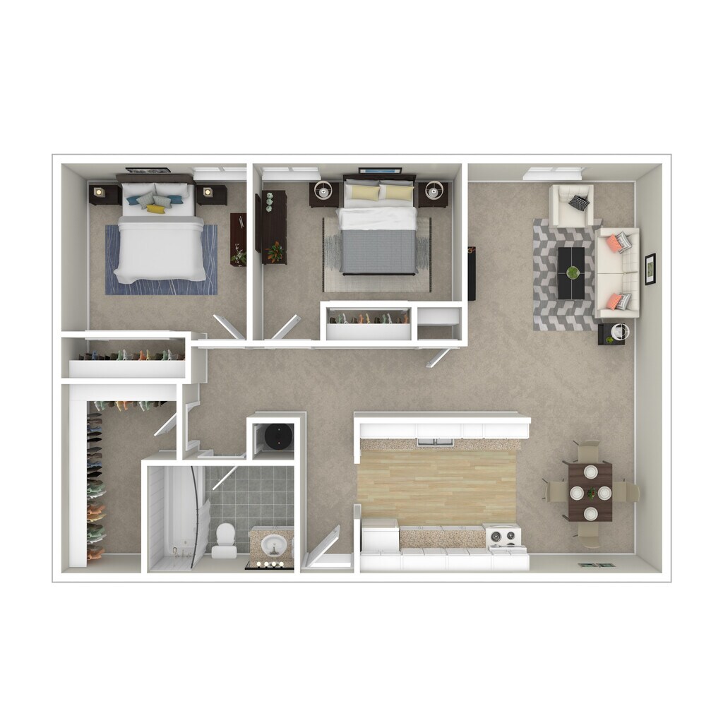 Modelo de apartamento: 2 Bedroom 1 Bath$1,1002 Dormitorios, 1 Baño, 782-812 sq ftDisponible December 5, 2025![]()