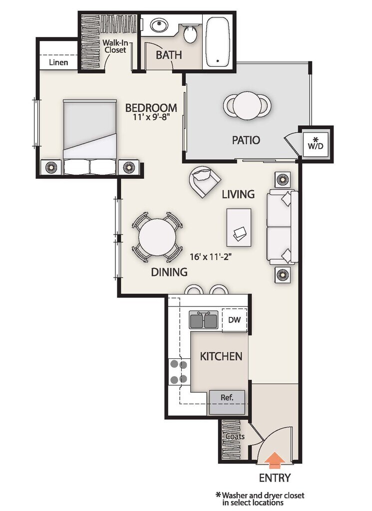 Modelo de apartamento: Plan FDesde $2,7151 Dormitorio, 1 Baño, 815 sq ftDisponible AhoraLos planos son representaciones artísticas. Todas las dimensiones son aproximadas. El producto y las especificaciones reales pueden variar en tamaño o detalle. No todas las características están disponibles en cada vivienda en alquiler. Por favor, consulta con un representante para obtener más detalles.