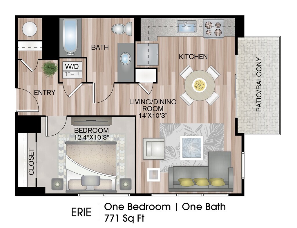 Estudio, 1 Baño, 751 pies²El más grandeEsta opción tiene las unidades más grandes para este modeloGalería del Modelo