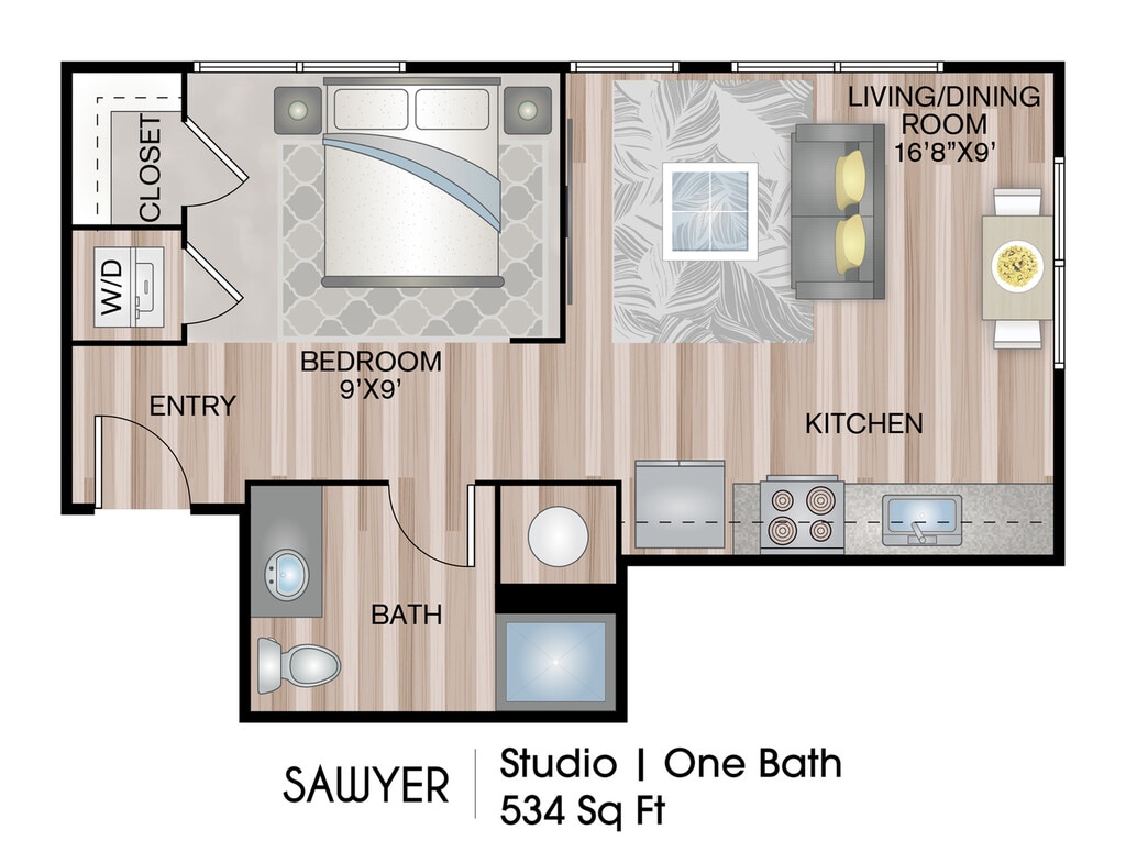 Modelo de apartamento: SawyerLlame para PreciosEstudio, 1 Baño, 534 sq ftNo Disponible![]()