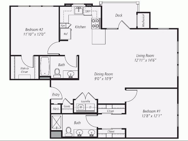 B9L - Plano 1 Unidad de apartamento: 004-4133Modelo de apartamento: B9L2 Dormitorios, 2 Baños, 1273 sq ftDisponible March 17, 2026Plano: B2