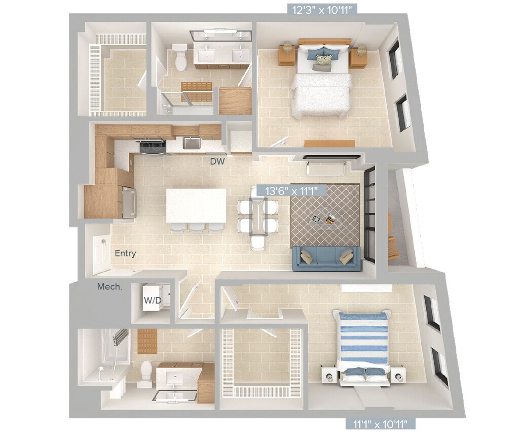 Modelo de apartamento: A3-786$2,3251 Dormitorio, 1 Baño, 786 sq ftDisponible February 18, 2026![]()