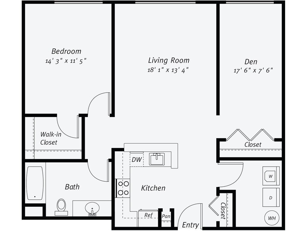 1 Dormitorio, 1 Baño, 951 pies²Disponible January 29, 2026El más grandeEsta opción tiene las unidades más grandes para este modeloGalería del Modelo