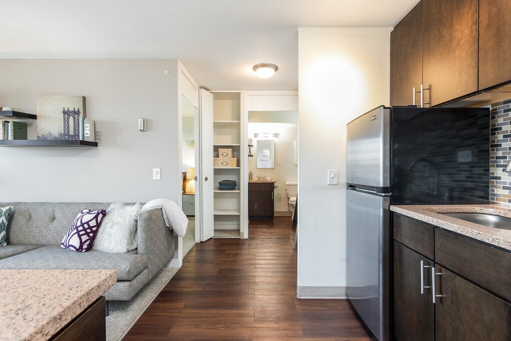 July 20, 2015The studio is pretty nice - I outfitted it with a murphy bed to save space which I mounted to the closet entry and it makes the room more than big enough. Balcony is huge, which is really nice, and the wall facing the street is essentially all windows which makes the room feel much larger than it is. All in all, the fact that there is a ton of storage space (one huge walk in closet and a wall closet) and that the amenities are all brand new makes this a perfect space for someone who doesn't mind ...fitting their day to day life into a single room.Leer MásReseña de Apartments.com