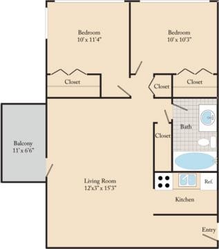 2 Dormitorios, 1 Baño, 700 pies²Disponible AhoraGalería del Modelo