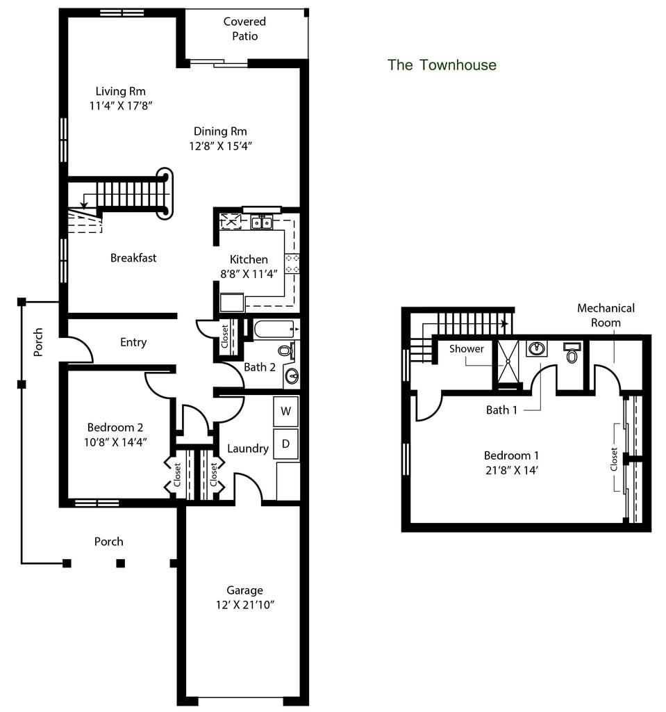 Townhouse - Plano 1 Unidad de apartamento: 041Modelo de apartamento: Townhouse$2,7492 Dormitorios, 2 Baños, 1749 sq ftDisponible December 12, 2025