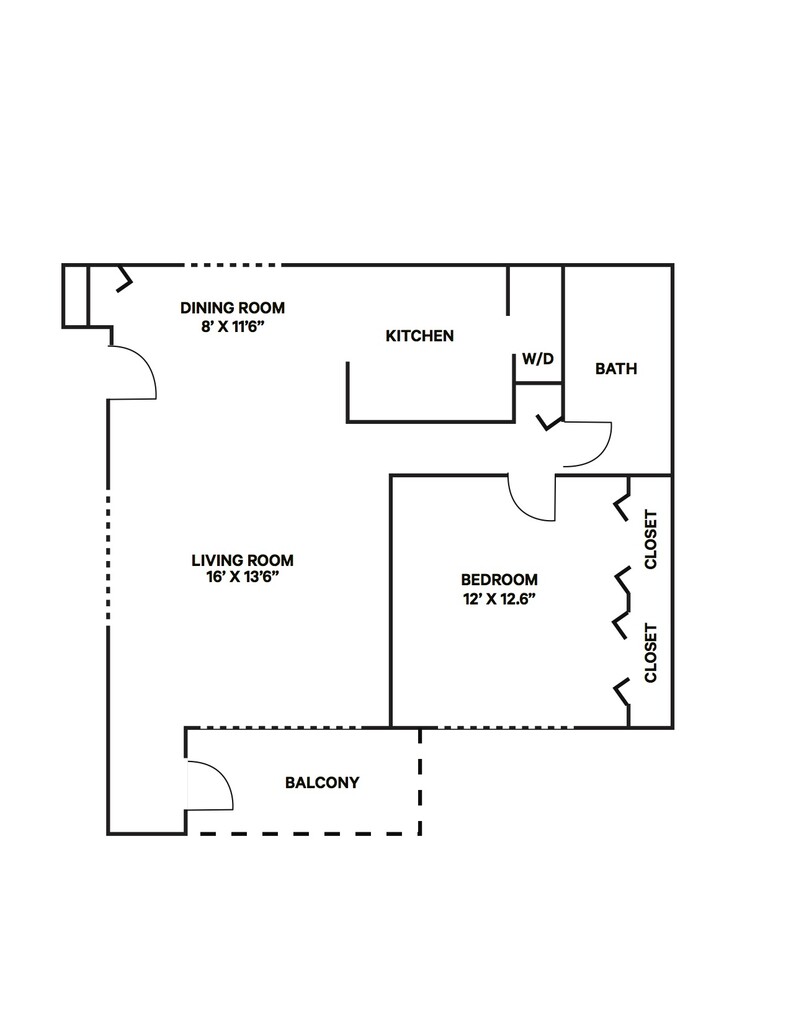 Modelo de apartamento: 1 Bed 1 Bath1 Dormitorio, 1 Baño, 720 sq ftNo Disponible1 Bed 1 Bath - Plano 1 2 Dormitorios