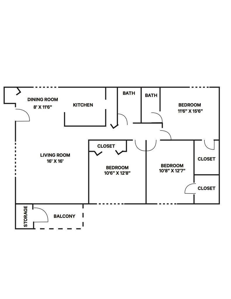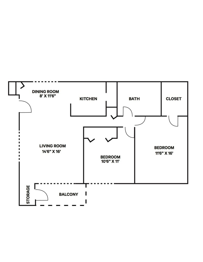 Modelo de apartamento: 2 Bed 1 Bath2 Dormitorios, 1 Baño, 980 sq ftNo Disponible2 Bed 1 Bath - Plano 1 3 Dormitorios
