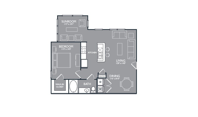 1 Dormitorio, 1 Baño, 876 pies²El más grandeEsta opción tiene las unidades más grandes para este modeloGalería del Modelo