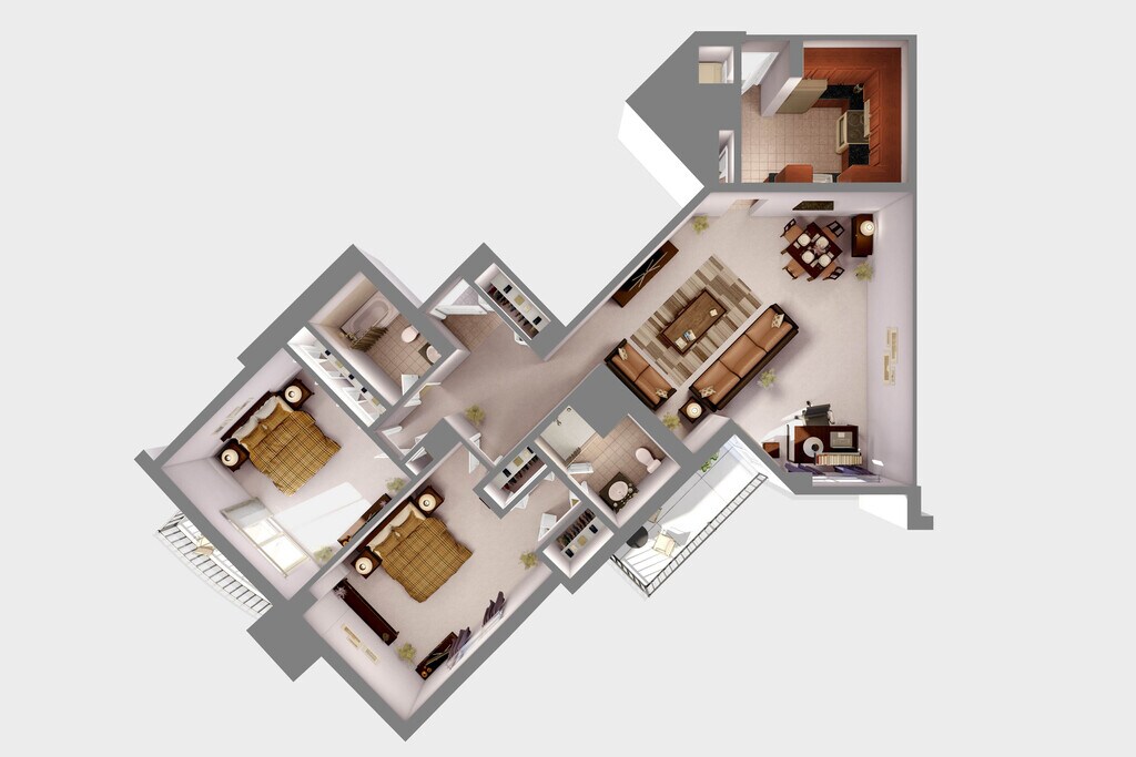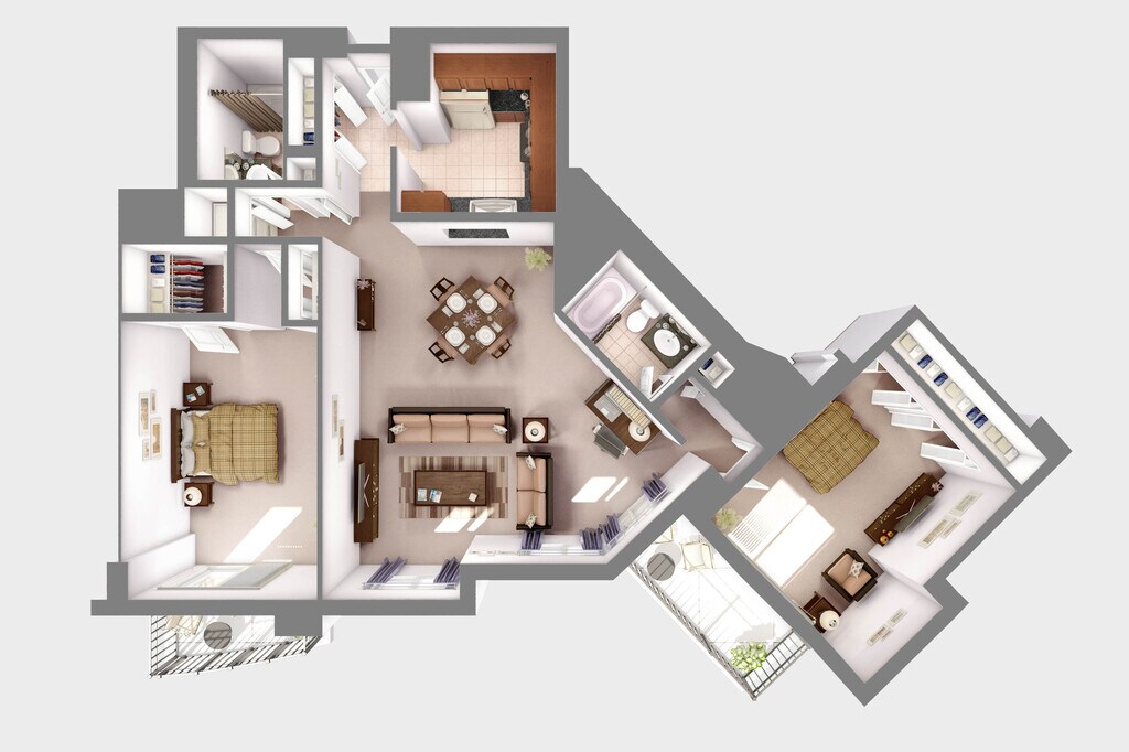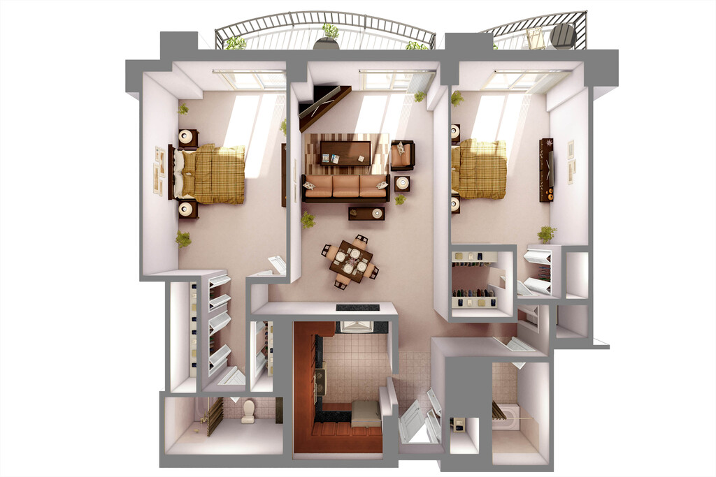 Modelo de apartamento: Tier 82 Dormitorios, 2 Baños, 1319 sq ftDisponible Ahora![]()