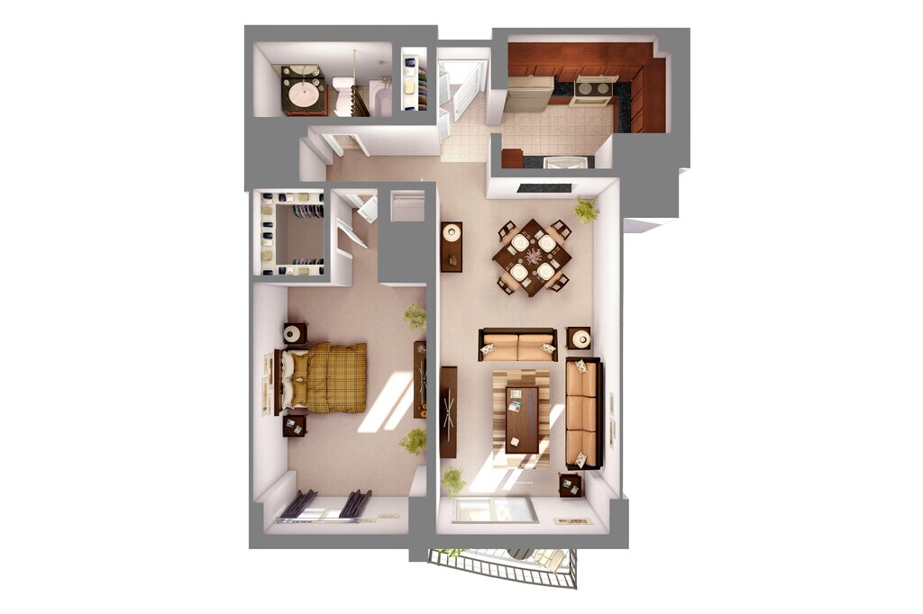 Modelo de apartamento: Tier 41 Dormitorio, 1 Baño, 804 sq ftDisponible Ahora![]()