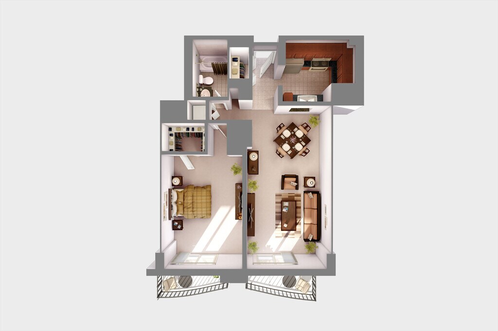 1 Dormitorio, 1 Baño, 854 pies²Disponible AhoraGalería del Modelo