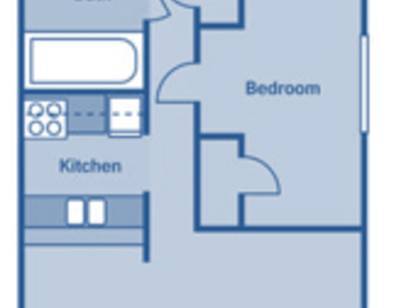 1 Dormitorio, 1 Baño, 640 pies²Disponible AhoraGalería del Modelo
