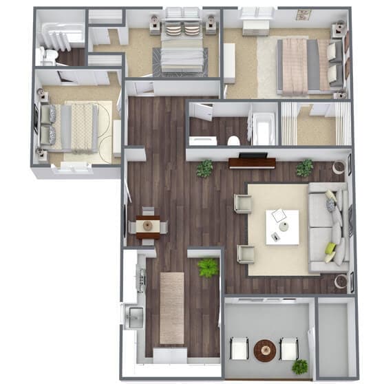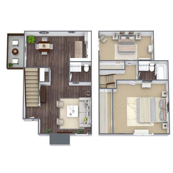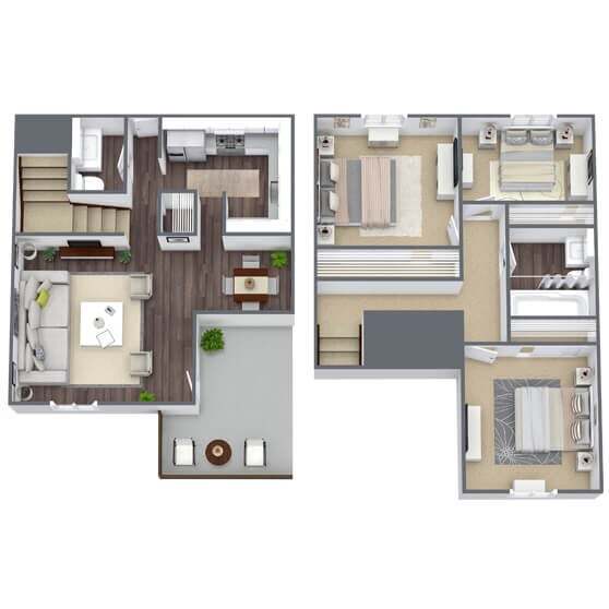 Modelo de apartamento: B1 TownhomeDesde $1,4892 Dormitorios, 1 Baño, 910 sq ftDisponible Ahora![]()