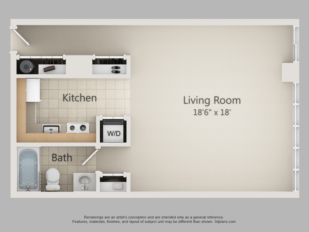 Estudio, 1 Baño, 460 pies²Disponible AhoraGalería del Modelo