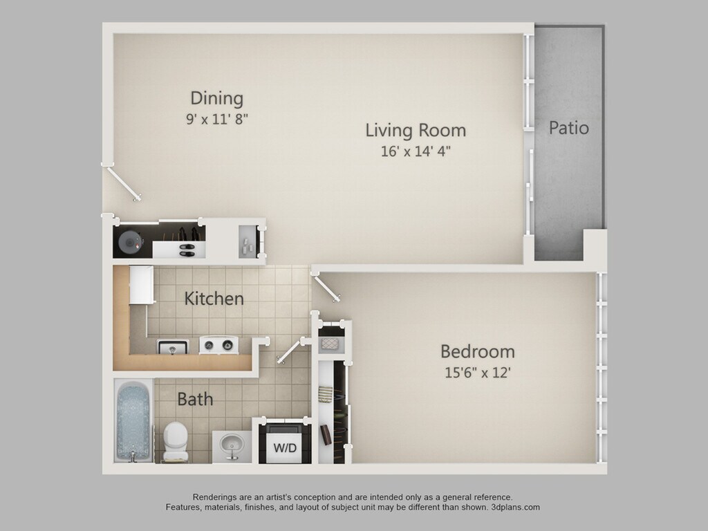 2 Dormitorios, 1 Baño, 760 pies²Disponible AhoraGalería del Modelo