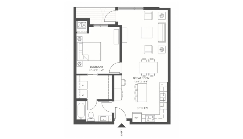 E1 - Plano 1 Unidad de apartamento: 501Modelo de apartamento: E1$1,8151 Dormitorio, 1 Baño, 686 sq ftDisponible April 1, 2026![]()