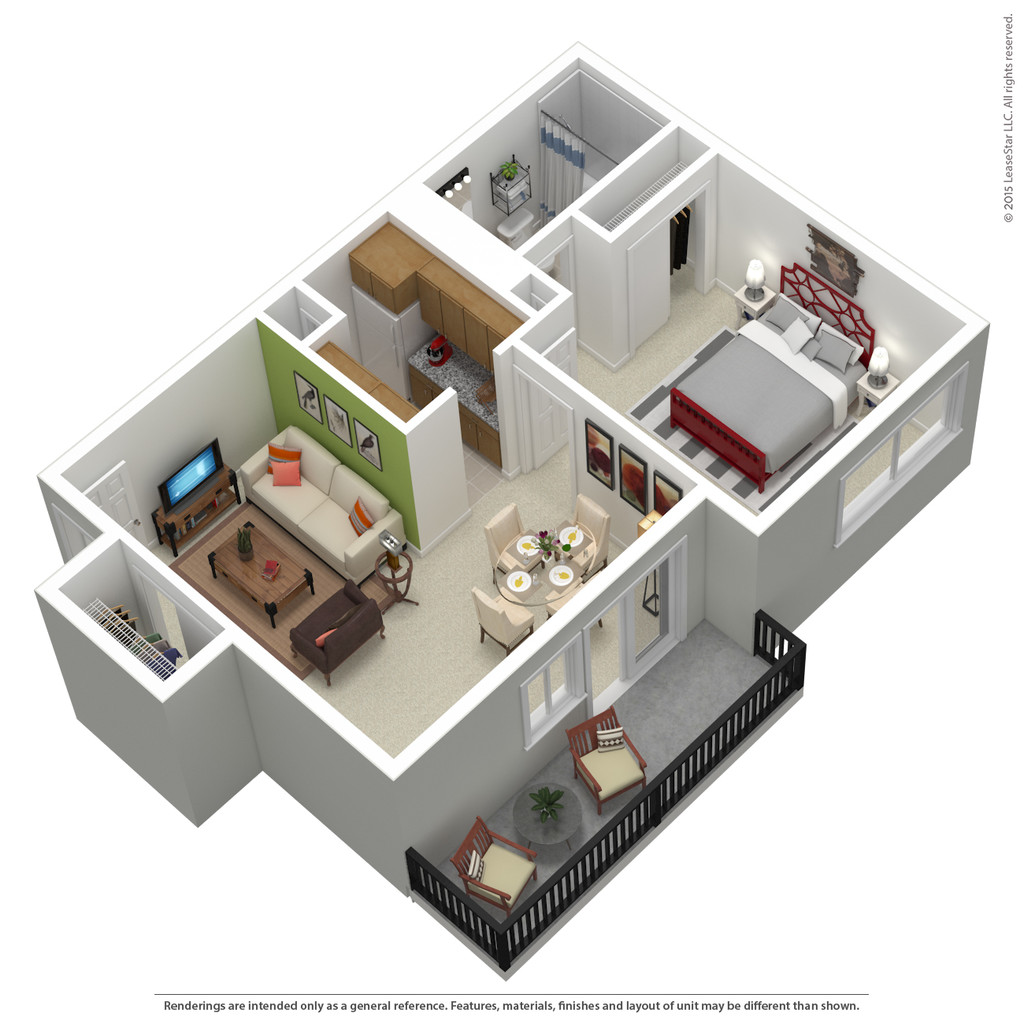 1 Dormitorio, 1 Baño, 645 pies²Disponible AhoraGalería del Modelo