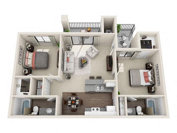2 Dormitorios, 2 Baños, 956 pies²Disponible AhoraGalería del Modelo