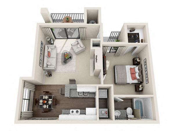 1 Dormitorio, 1 Baño, 715 pies²Disponible AhoraGalería del Modelo