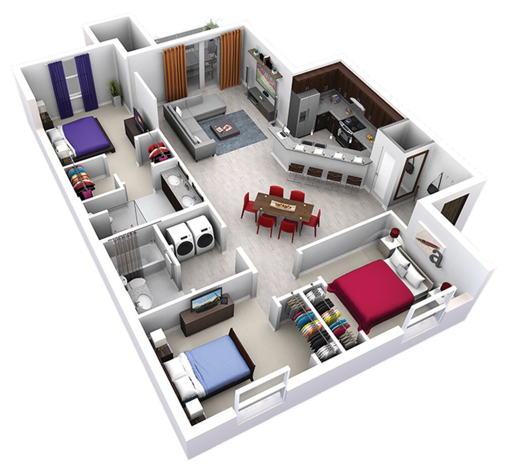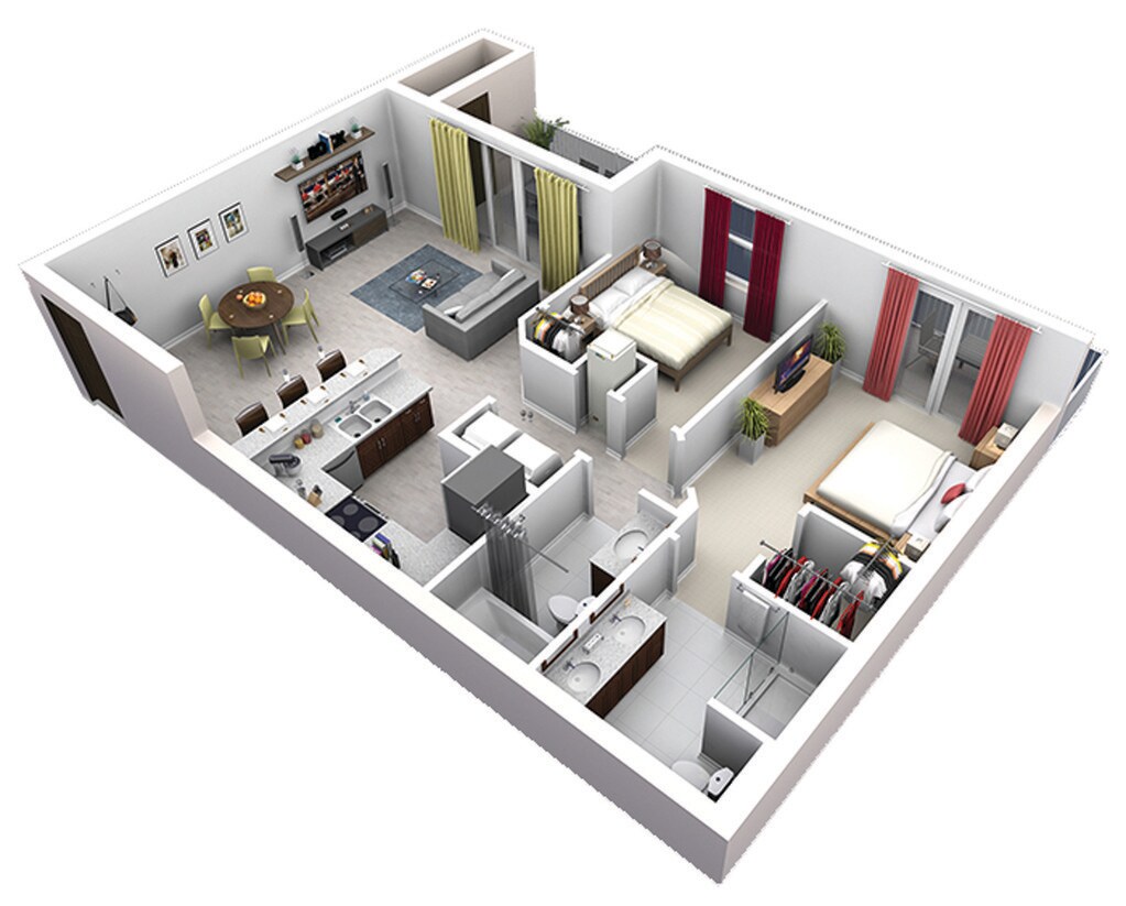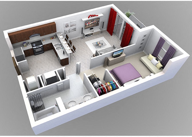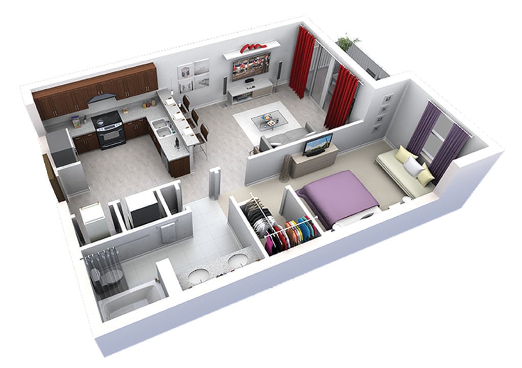 1 Dormitorio, 1 Baño, 865 pies²Disponible AhoraGalería del Modelo